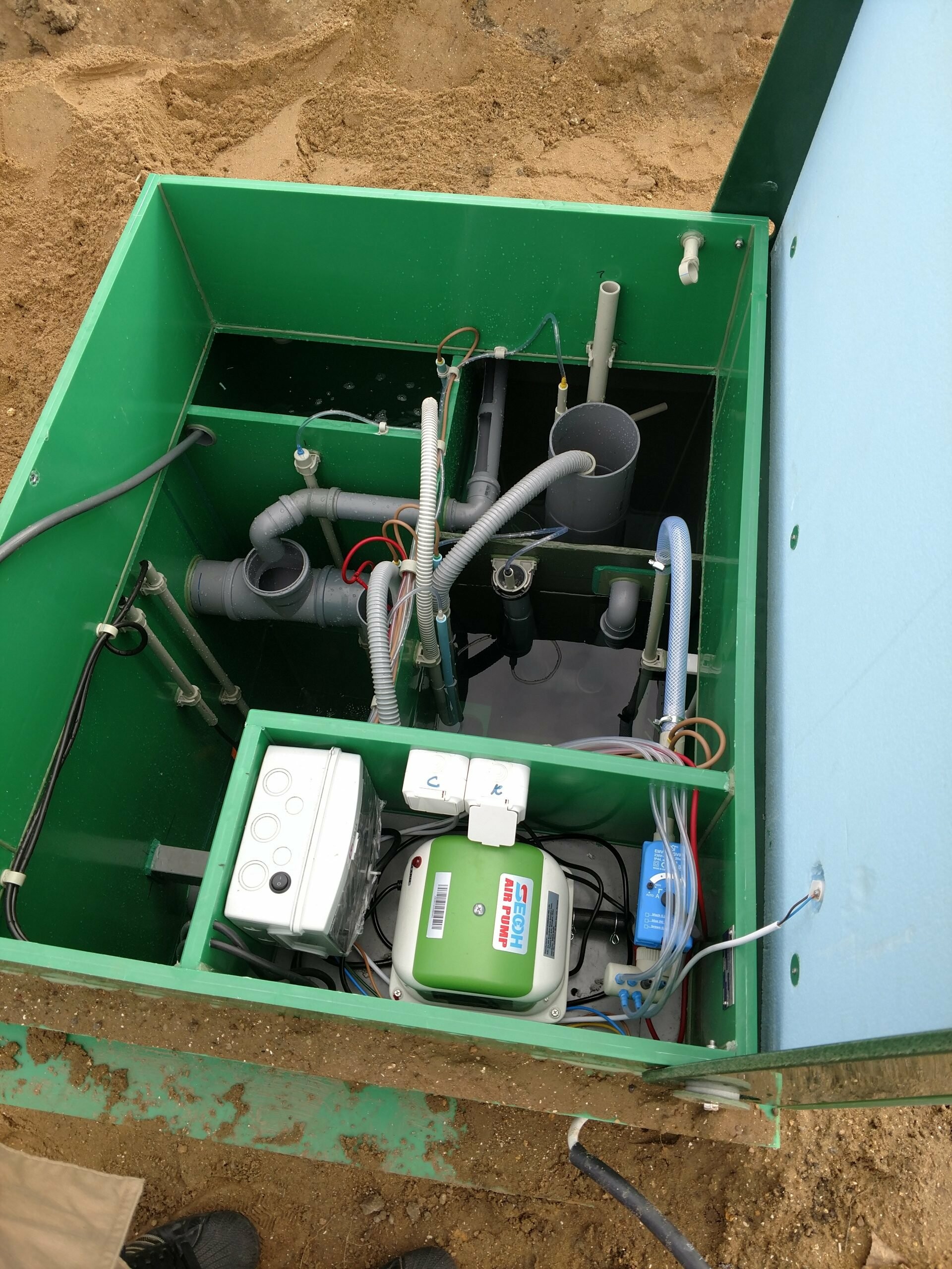 - Установка: Біосептик монтується в котлован, підключається до каналізації та електромережі.